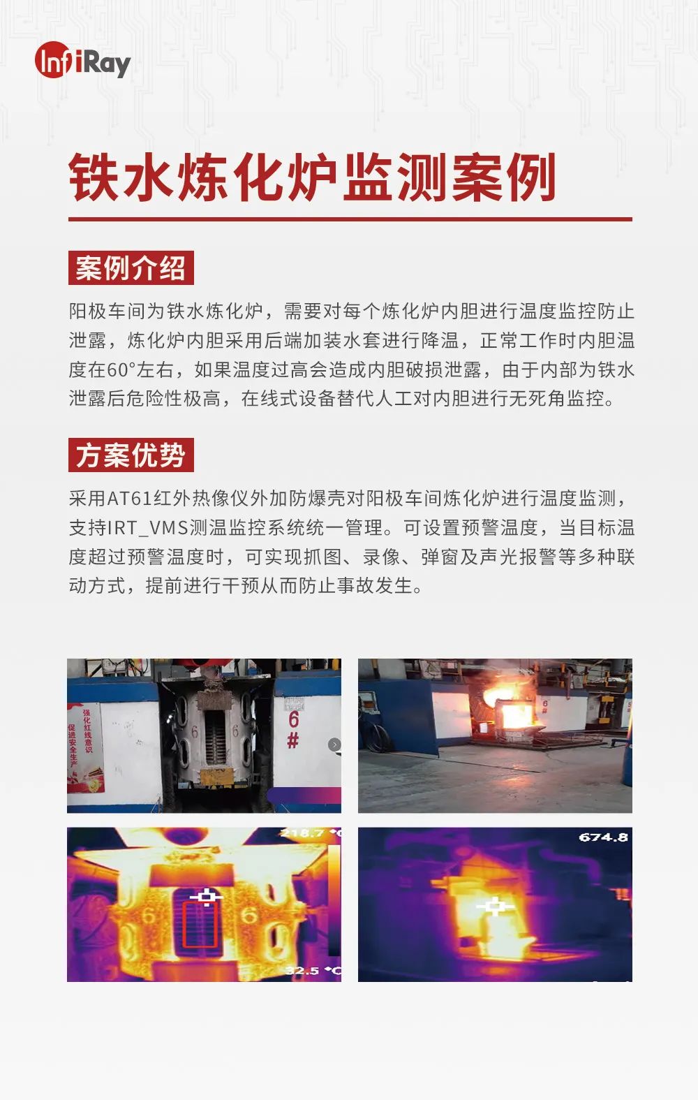 針對冶金行業(yè)內不同應用場景,艾睿光電可為客戶提供專業(yè)可靠的紅外熱像儀設備和解決方案,實現(xiàn)實時監(jiān)測、缺陷診斷、報警輸出等功能,充分滿足冶金行業(yè)應用需求。