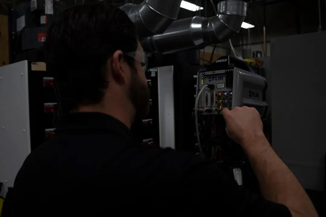 BIC的實(shí)驗(yàn)室技術(shù)員通過(guò)設(shè)置FLIR高速熱像儀來(lái)監(jiān)控電池測(cè)試