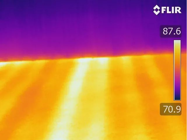 溫度變化越大,熱傳遞就越大。比如,打開空調(diào)(冷空氣更濃,會下落)來冷卻板坯,然后打開輻射加熱器30分鐘,這樣的組合往往會產(chǎn)生高質(zhì)量的對比圖像,如下圖: