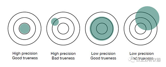 下圖說明了精密度和正確度如何共同影響準(zhǔn)確性。