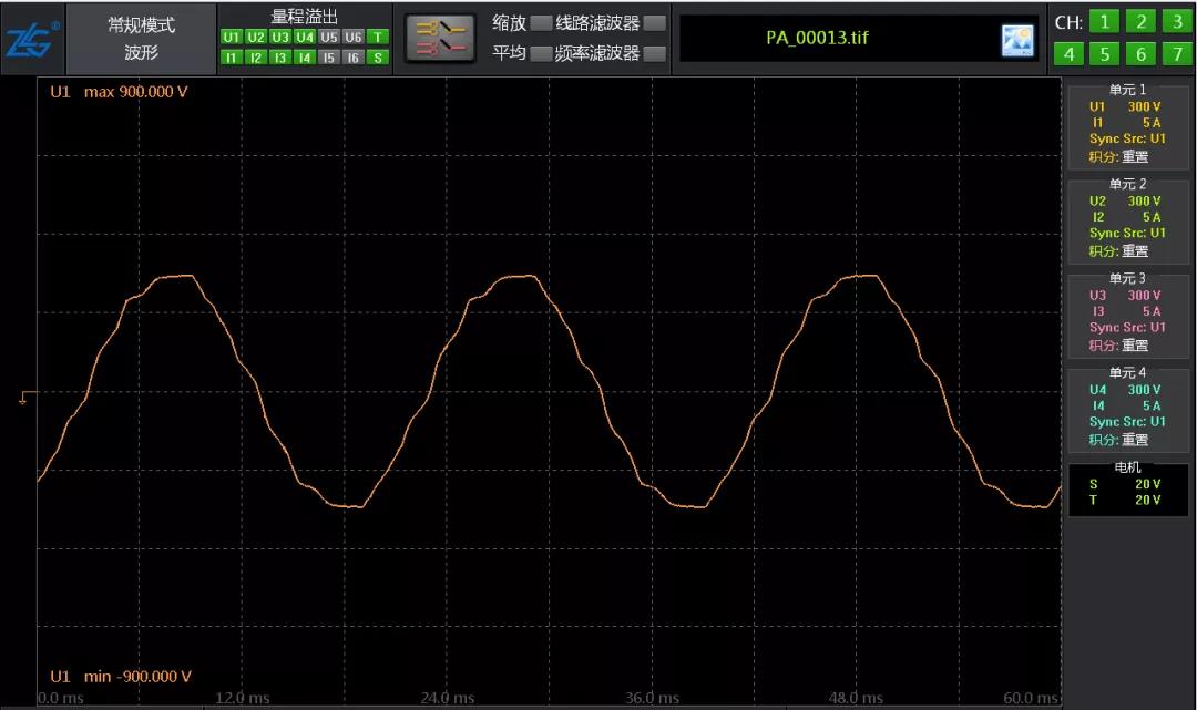 第一步 將市電的火線和零線直接接到功率分析儀1通道電壓輸入端(功率分析儀可直接接入1500V有效值)將功率分析儀接線設(shè)置為1P2W,觀察信號真實情況,無需開啟線路濾波器。