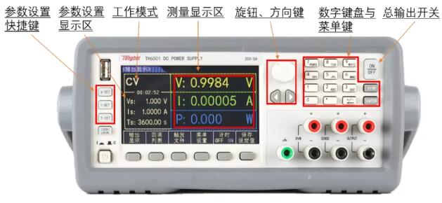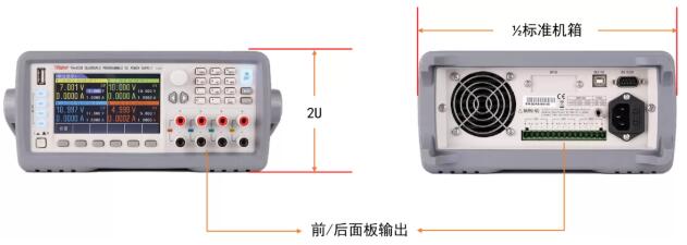 TH6500系列電源前后面板都配備有輸出端、采樣端和測試端,具有1/2標準機箱尺寸,配備齊全的通訊接口,支持SCPI和MODBUS通訊協議,使其可以方便的集成于自動化系統(tǒng)上。