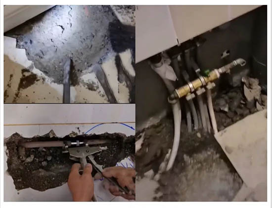 通過(guò)直觀的熱像圖,T120全面捕捉到了管道溫度分布,幫助張師傅快速發(fā)現(xiàn)異常點(diǎn),隨后再利用畫(huà)中畫(huà)模式,精準(zhǔn)定位了可疑位置,做好標(biāo)記后破開(kāi)該處小區(qū)域地板,看到該處管道正在往外滲水,及時(shí)進(jìn)行了針對(duì)性維修。