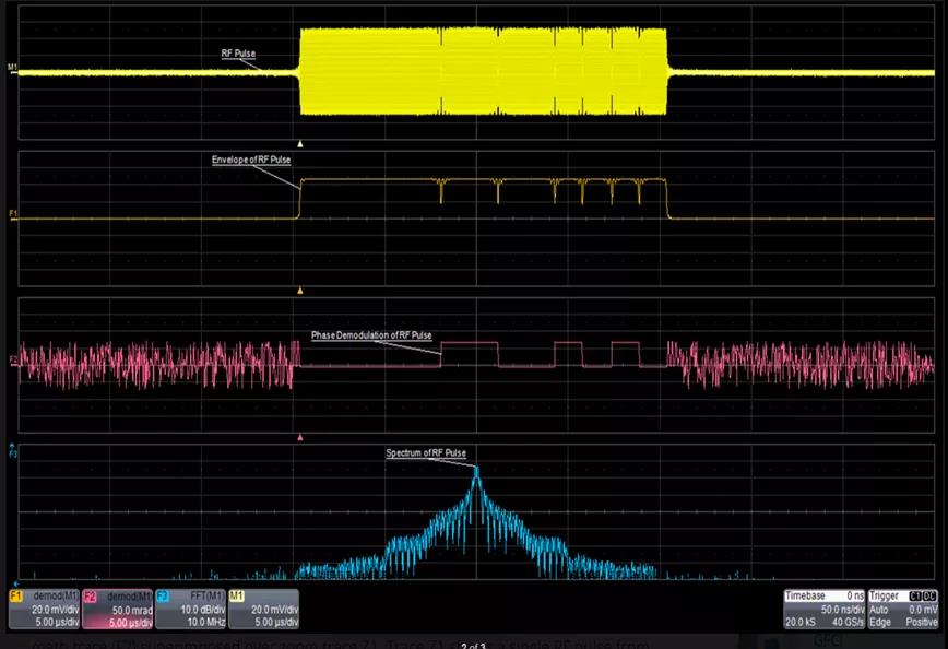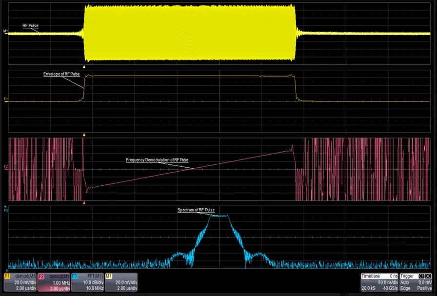 Demodulate是力科示波器的一個(gè)分析函數(shù),可以支持調(diào)幅、調(diào)頻和調(diào)相的解調(diào),脈沖雷達(dá)系統(tǒng)使用了包括調(diào)幅、調(diào)頻和調(diào)相在內(nèi)的多種調(diào)制方式,下面我們通過(guò)3個(gè)使用力科WaveMaster8Zi-B示波器分析雷達(dá)信號(hào)的例子,介紹使用數(shù)字示波器分析數(shù)字調(diào)制信號(hào)的方法。