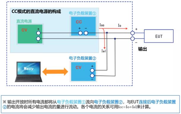 · 將電子負載裝置①的恒電流值(CC)設(shè)定為EUT的試驗時所需的最大電流值以上。