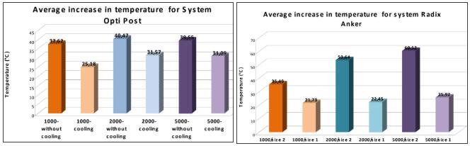 無冷卻和有冷卻鉆孔的平均溫度升高 和兩種尺寸的鉆機鉆孔時的平均溫度升高