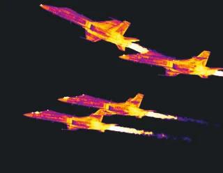 FLIR制冷型銻化銦熱像儀捕獲的“黃蜂”戰(zhàn)斗機(jī)的定格圖像