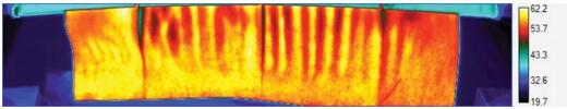 為了精確測量葉片表面與加熱線圈的溫度,注意制冷型熱像儀的快速積分時間如何獲得葉片的定格畫面。與之相反的是,因葉片轉(zhuǎn)速過快,非制冷型紅外熱像儀無法記錄葉片表面與加熱線圈的溫度。而且線圈被旋轉(zhuǎn)葉片所遮擋,所測的溫度將會偏低。