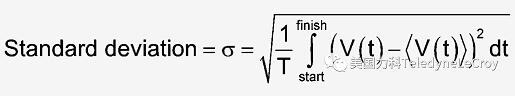 通常,當(dāng)我們想使用RMS 值來表征噪聲電平時,尤其是在低電平時,RMS 值可能是一個存在誤導(dǎo)性的特征參數(shù)。除了我們想要表征的波動之外,噪聲中的 DC 分量也會影響RMS 值。這意味著RMS不是噪聲水平的良好特征參數(shù)。如果我們首先減去平均值然后計算RMS,就可以測量平均值的波動。這正是標(biāo)準(zhǔn)偏差的定義。