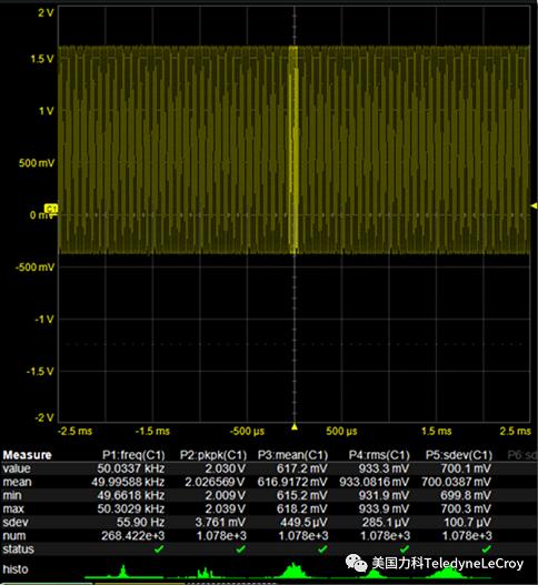 一旦采集到數(shù)據(jù),我們就可以利用示波器內(nèi)置的計算參數(shù)對多個周期的波形以高的電壓和時間分辨率自動提取波形的所有重要特征參數(shù)。