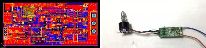 通過對比可以看到,不論是優(yōu)化程序激勵的驅動器,還是未優(yōu)化程序所激勵的驅動器,隨著轉速提高,工作電流都成倍增加。這是因為轉速提高后,電機阻力成倍增加的緣故。對比相同轉速情況下的電流,可以發(fā)現(xiàn)轉速較低時,優(yōu)化后的驅動器電流減少并不多,沒有多大優(yōu)勢。而在高轉速情況下,電流減少較多,優(yōu)勢十分明顯。此外通過供電電流測量還發(fā)現(xiàn)優(yōu)化后的驅動器電流變化平穩(wěn),沒有出現(xiàn)大電流脈沖,減少了調速器產(chǎn)生的電磁干擾??梢妰?yōu)化設計帶來了不少的好處。圖4.1是根據(jù)圖2.2進一步改進和縮小尺寸的驅動板,其性能進一步提升。目前該驅動板已應用到實際使用中,效率高、省電節(jié)能效果良好。