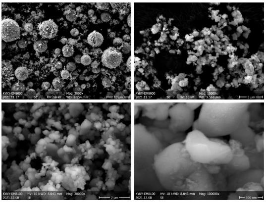 以下是中科科儀EM8000、EM8100型號(hào)的場(chǎng)發(fā)射掃描電鏡拍攝的磷酸鐵鋰的照片,可以直觀地觀察到磷酸鐵鋰顆粒的形貌、粒徑大小及分布、團(tuán)聚程度以及包覆情況。