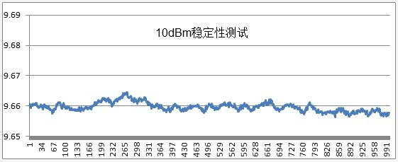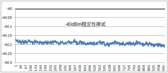 87235系列USB功率探頭具有極高穩(wěn)定性,如圖4、圖5所示為-40dBm、+10dBm功率點穩(wěn)定性測試,-40dBm功率穩(wěn)定度<±0.05dB,+10dBm功率穩(wěn)定性達(dá)到<±0.01dB,可滿足用戶計量級測試需求。