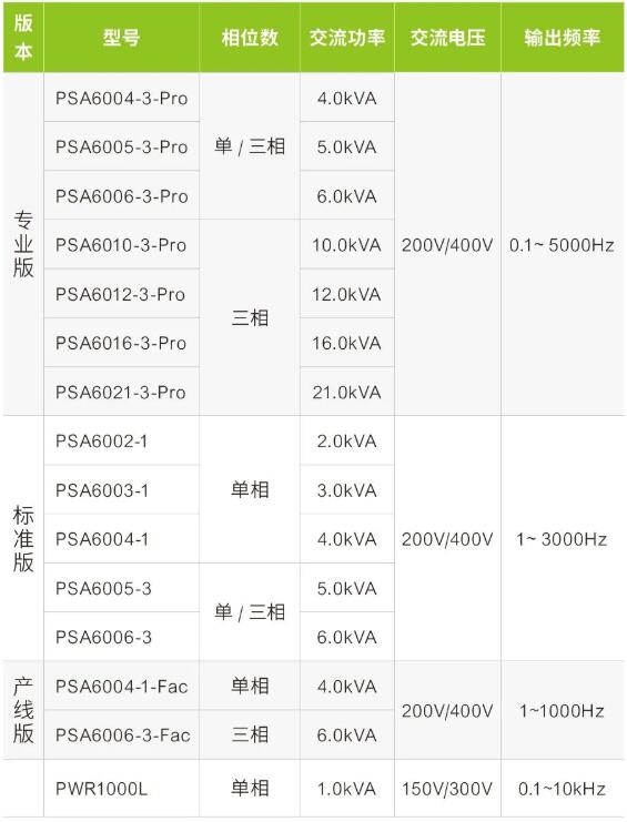 高性能可編程交流電源選型表