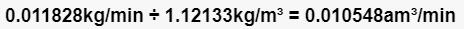取0.011828 kg/m(kg/min)的質(zhì)量流量,除以密度1.12133 kg/m3(kg/m3),得到體積流量0.010548 am3/m(實(shí)際立方米/分鐘)。
