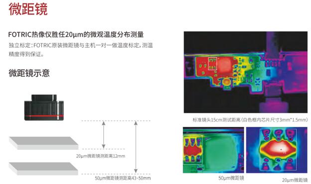 FOTRIC 288為專家級科研熱像儀,配置20μm微距鏡后,最小成像距離為12mm,能夠精準(zhǔn)捕捉細微溫度,保證科研測溫的精度。
