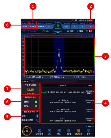 當(dāng)監(jiān)測的信號為數(shù)字對講機(jī)信號時(shí),會在【7】處顯示對講機(jī)的協(xié)議類型,反之顯示“--”表示未識別到數(shù)字對講機(jī)信號。