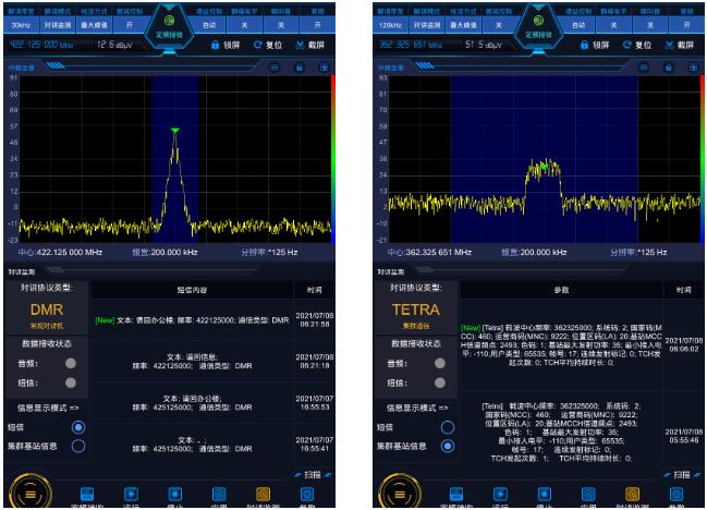 此外,該功能還具有解析短信的能力以及集群通信基站數(shù)據(jù)解析能力,為非法對講機(jī)信號監(jiān)測提供了有效工具。