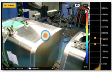 福祿克新產(chǎn)品SV600在線式聲學(xué)成像儀,就是這樣一臺利用聲學(xué)成像技術(shù)工作的檢測儀器,它可以將氣體泄漏過程中產(chǎn)生的聲波能量進行捕捉,并將發(fā)生泄漏的位置顯示在可見光攝像頭拍攝的畫面里,方便你直觀的看到發(fā)生泄露的準確位置。