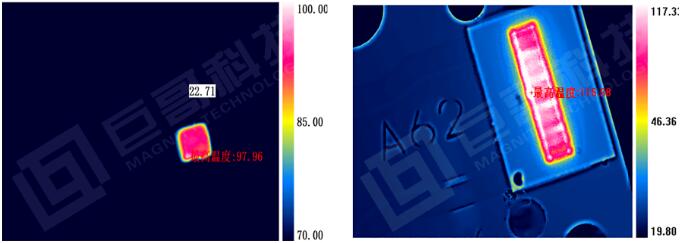 汽車LED燈由多個光珠排列組成,在檢測過程中,光珠的發(fā)光情況用肉眼難以分辨,不能及時判斷光珠缺陷。巨哥科技的熱像儀配置微距鏡頭,可通過熱能分布檢測出LED的工作狀態(tài),及時發(fā)現(xiàn)缺陷,并對發(fā)光能效進行有效分析。