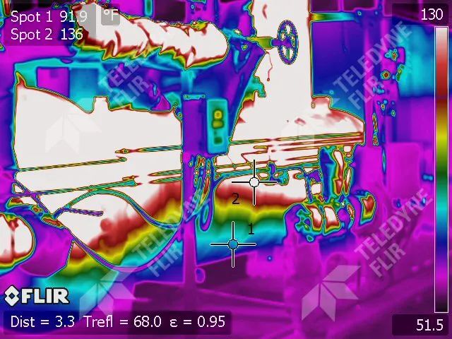 FLIR GFx320經(jīng)獨(dú)立認(rèn)證為“本質(zhì)安全型防爆紅外熱像儀”,能維持危險場所內(nèi)的安全性。因此,Hawkins及其團(tuán)隊可以使用GFx320接近分離器。它們可以捕捉多個角度,避免陽光照射,從而加熱分離器表面。