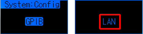 在電源前面板上按下menu鍵,旋轉前面板兩側任一旋鈕切換到“system”,并按下旋鈕進入系統(tǒng)設置界面。在Config > LAN中查詢到儀器的IP地址和端口號,并填入到上位機軟件右側的“儀器IP”和“儀器端口”中。