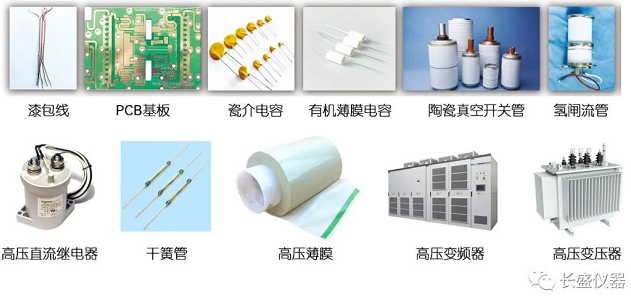 漆包線、PCB基板、瓷介電容、有機薄膜電容、陶瓷真空開關管、氫閘流管、直流控觸器、高壓直流繼電器、干簧管、高壓薄膜、高壓變頻器、高壓變壓器等各類高壓產品的安規(guī)測試