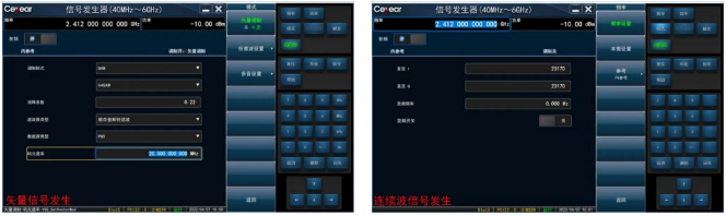 (1)寬帶矢量調(diào)制信號發(fā)生功能可用于芯片測試中所需PSK、FSK、QAM等調(diào)制信號的產(chǎn)生;連續(xù)波信號發(fā)生功能可用于芯片測試中單音信號的產(chǎn)生。