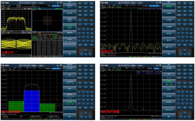 (2)寬帶矢量調(diào)制信號分析可用于芯片測試中所需PSK、FSK、QAM等調(diào)制信號的解調(diào);頻譜分析可用于射頻芯片插損、隔離度、三階交調(diào)、相位噪聲和噪聲基底的測試;帶內(nèi)功率測量功能可用于通訊類芯片的測試;相位噪聲測量功能可用于VCO和信號產(chǎn)生類芯片的單邊帶相位噪聲測試。
