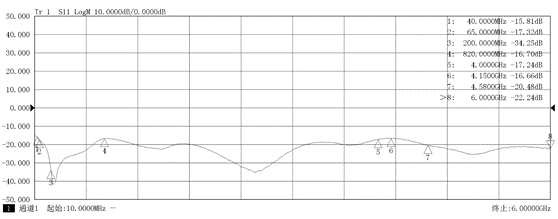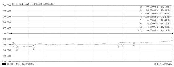 圖6 信號收發(fā)儀射頻輸入端口回波損耗曲線(實測值)
