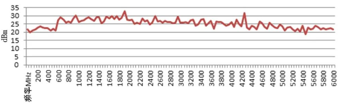 6955AC信號收發(fā)儀的部分關(guān)鍵指標(biāo)實測值如下圖5~圖9所示。優(yōu)秀的回波損耗指標(biāo)是輸出功率精度和幅度測試精度的基礎(chǔ),同時6955AC具備較高的最大輸出功率,以滿足功放測試等場景對輸出信號功率的需求。
