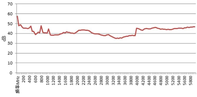 圖9 信號收發(fā)儀信號發(fā)生的二次諧波(0dBm,實測值)