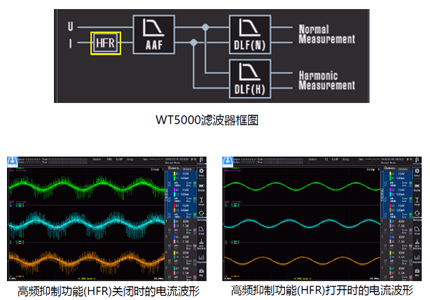 760903的高頻抑制功能(HFR)僅在電流回路打開HFR濾波器,消除電流的高頻成分,而對(duì)電壓信號(hào)的高頻成分沒有影響。這對(duì)于準(zhǔn)確和穩(wěn)定的測(cè)量非常有用。