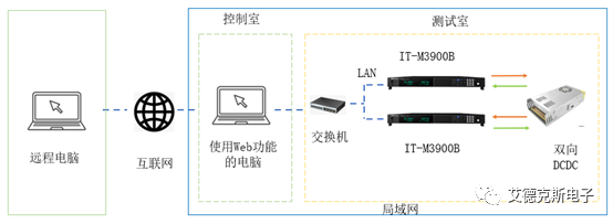 某電源用戶需要測試其雙向DC-DC模塊的電氣性能及保護(hù)功能,希望可以遠(yuǎn)程啟動、設(shè)置測試電源負(fù)載,讀取測試數(shù)據(jù),并盡量減少現(xiàn)場接線的工作。