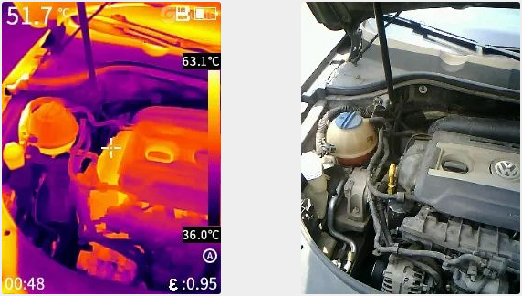除此之外,發(fā)動機(jī)的工作狀態(tài)與其它相關(guān)零部件的溫度同樣息息相關(guān)。通過紅外熱像儀可以對發(fā)動機(jī)工作狀態(tài)進(jìn)行多方面輔助分析。