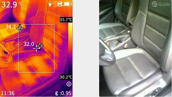 借助熱像儀可以呈現(xiàn)座椅熱傳導(dǎo)的熱像圖,“透視”座椅上的電阻絲分布情況,并能從熱像圖中清晰查看加熱面積和加熱排列是否均勻等,輔助評估加熱方式設(shè)計(jì)等。