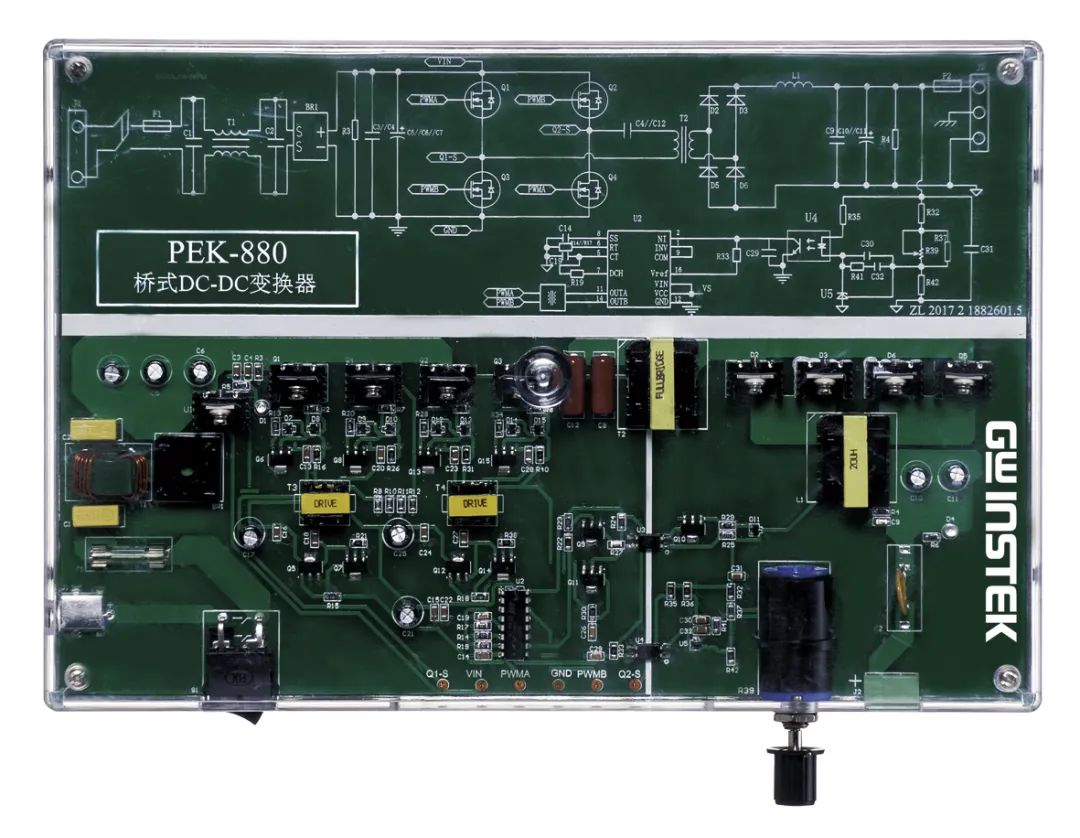 PEK-880模塊是固緯電子開啟本科教學的常見全橋電路拓撲結(jié)構(gòu)的展示環(huán)節(jié),PWM的占空比越大,輸出電壓和電流就會越大。要穩(wěn)定輸出電壓和電流,均是通過采樣信號進行負反饋來調(diào)節(jié)PWM的占空比。為廣大老師與學生開創(chuàng)全新的理論與實踐相結(jié)合的教學模式,還請各位老師同學進行了解轉(zhuǎn)發(fā)。