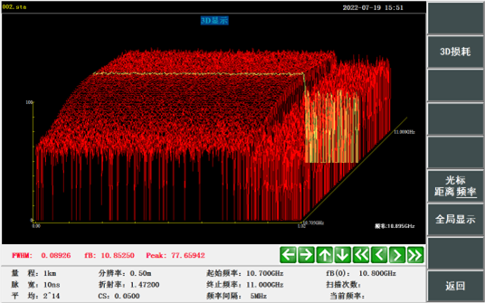 6419A光纖應(yīng)變分布測試儀可實(shí)現(xiàn)沿光纜方向連續(xù)分布的應(yīng)變參數(shù)測試,最大測試量程可到128km,最高應(yīng)變測試精度低至±10με,最高空間分辨率優(yōu)于1m,出色的性能指標(biāo)使得被測對象中任何的形變突起都逃不過6419A的火眼金睛,分布式的二維、三維應(yīng)變數(shù)據(jù)分析功能,能夠保證對監(jiān)控對象的全局、細(xì)節(jié)數(shù)據(jù)分布式監(jiān)測、定位。