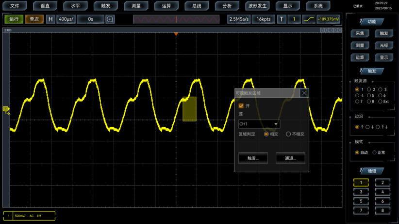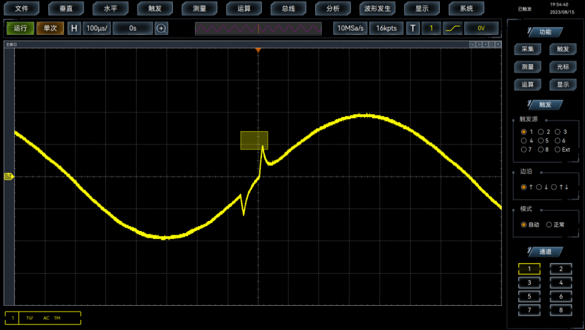 在電路開發(fā)和測試過程中,經常需要對非單調邊沿信號和偶發(fā)毛刺等特殊信號進行觸發(fā),然而這些信號用示波器常規(guī)觸發(fā)和高級觸發(fā)進行捕獲,難以得到穩(wěn)定和清晰的波形,給工程師測試增加了難度。4457系列數(shù)字示波器的可視區(qū)域觸發(fā)功能給用戶提供了觸摸屏幕繪制區(qū)域來對波形進行進一步的觸發(fā)篩選,真正實現(xiàn)“所畫即所得”,讓您輕松應對特殊信號的測試挑戰(zhàn)。