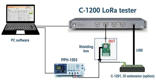 LPWAN是近年發(fā)展十分迅速的應(yīng)用之一,也是建置物聯(lián)網(wǎng)基礎(chǔ)核心的最后一塊拼圖,實現(xiàn)萬物聯(lián)網(wǎng)的重要推手,常見的主題包含智慧城市、智慧工廠、智慧農(nóng)業(yè)和智慧醫(yī)療等。目前固緯電子針對廣域低功耗(LPWAN)應(yīng)用,提供一套完整的LoRa測試方案。相較市面其他測試設(shè)備,固緯的C-1200方案具備射頻收發(fā)的能力、支持完整的LoRa設(shè)定參數(shù)、及所需要的待測物控制接口,并提供LoRa測試專屬的計算機軟件,同時整合高精度直流電源(PPH-1503),實現(xiàn)一套簡化且完整的LoRa測試方案(如圖1),可大幅降低工程師的負(fù)擔(dān),也減少了測試設(shè)備的成本。