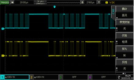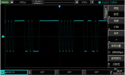 1.將探頭連接好信號之后調(diào)節(jié)觸發(fā)設(shè)置將信號捕捉到并穩(wěn)定觸發(fā)。