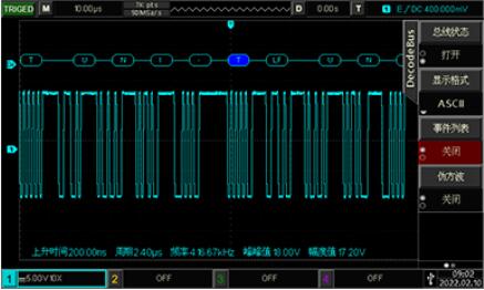 2.打開協(xié)議解碼選擇RS-232,設(shè)置極性為正極性,波特率為1250000,打開總線解碼,解碼選擇RS-232,顯示格式為 ASCII,調(diào)節(jié)相關(guān)的設(shè)置之后可以清晰的看到解碼后的結(jié)果。