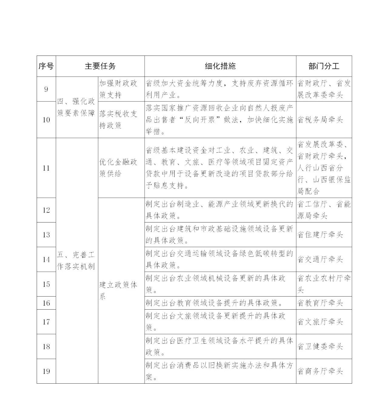 山西省推動大規(guī)模設(shè)備更新和消費品以舊換新實施方案