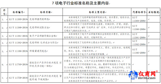 附件:7項電子行業(yè)標準名稱及主要內(nèi)容.doc