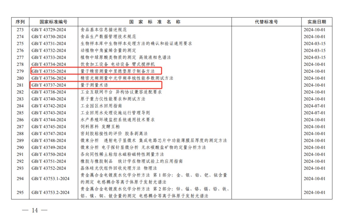 量子測量是利用量子特性(能級躍遷、相干疊加、量子糾纏)獲得突破經(jīng)典測量技術極限,開拓物理信息感知維度的新一代精密測量感知技術。這些技術將在慣性導航、時間基準、目標識別、地形測繪、醫(yī)學檢驗、物理學基本原理檢驗等領域發(fā)揮重要作用。此次發(fā)布的國家標準提供了量子測量領域的基本術語和定義,規(guī)范了光鐘、單光子源、原子重力儀等核心產(chǎn)品性能測試方法和量子精密測量等領域里德堡原子制備方法,為我國量子測量領域科技、產(chǎn)業(yè)、標準化協(xié)同發(fā)展奠定了堅實基礎。