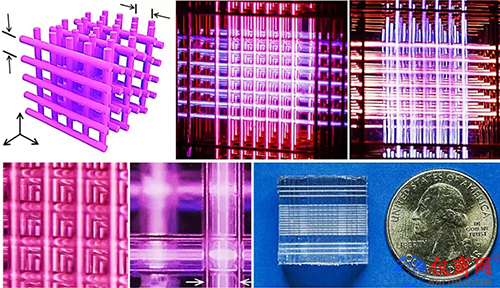 孫鵬和他的同事們用3D打印制造出一種支架,這是所需網(wǎng)絡(luò)的基礎(chǔ)底片。隨后,他們將聚合物倒入,一旦凝固,再向直徑為0.3毫米的微毛細(xì)管中充滿等離子體、金屬和介電氣體。針對這個復(fù)制模塑(replica-molding)技術(shù),他們花了近5年的時間來完善木樁狀晶格中微毛細(xì)管的尺寸和間距。