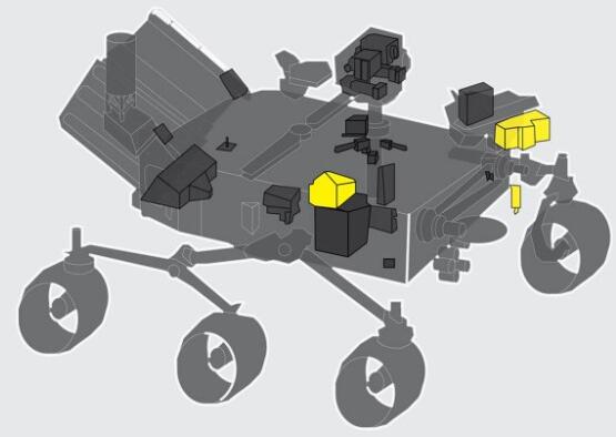 SHERLOC安裝在與漫游車相連的7英尺長的機械臂末端,包括激光器、攝像頭和光譜儀。該儀器將搜索被水改變的物質,并揭示火星上過去存在微觀生命的證據。校準目標裝置大小和一部大手機差不多,安裝在火星車的正面。