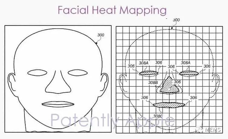 蘋果公司堅定使用3D人臉識別,并且不斷更新技術(shù)水平。為了避免眼鏡、面罩、頭模等干擾身份驗證過程,在近期的新專利中指出:下一代人臉識別系統(tǒng)將把用戶臉部的熱量分布特征加入比對。