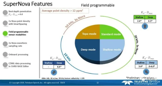 CZMIL SuperNova擁有其同類中最好的測(cè)深性能和最高的綠色激光點(diǎn)密度。CZMIL SuperNova采用SmartSpacing技術(shù),實(shí)現(xiàn)均勻高效的點(diǎn)間距、實(shí)時(shí)處理能力(減少后處理時(shí)間)和可配置模式,以最大限度地提高不同水環(huán)境中的性能,CZMIL SuperNova為氣候變化建模提供了廣泛的輸入數(shù)據(jù),是內(nèi)陸水環(huán)境、海岸帶和海岸線基礎(chǔ)測(cè)繪的理想選擇。