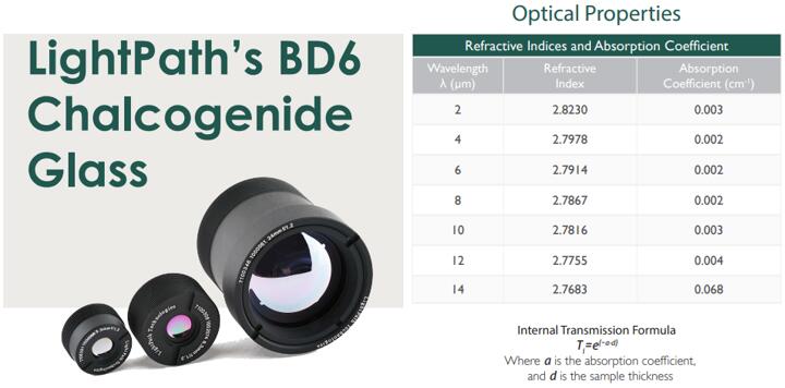 LightPath的專有硫系材料Black Diamond?以BD6品牌銷往全球,是鍺光學(xué)元器件的替代品。該公司表示,其“優(yōu)良特性”主要包括:不含稀土、重量更輕、比鍺的熱成像工作波段更寬廣。BD6硫系玻璃是中波紅外(MWIR)和長(zhǎng)波紅外(LWIR)熱成像系統(tǒng)的理想材料。